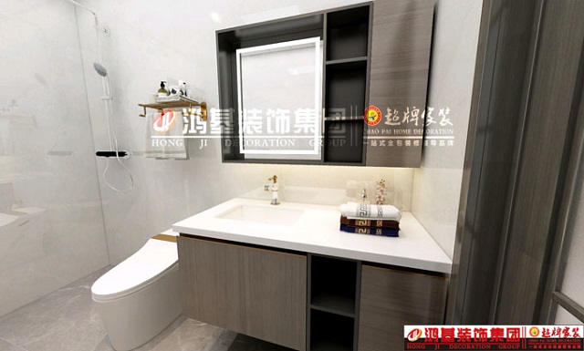 圖8.亮點(diǎn):衛生間浴室柜采用灰木紋面板定制,與全房柜體相互呼應,避免色系過(guò)多而造成視覺(jué)疲勞。